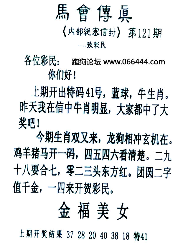 121期:{跑狗论坛}平特一尾<08-18-28-38-48>长期跟踪,稳赚不赔! |