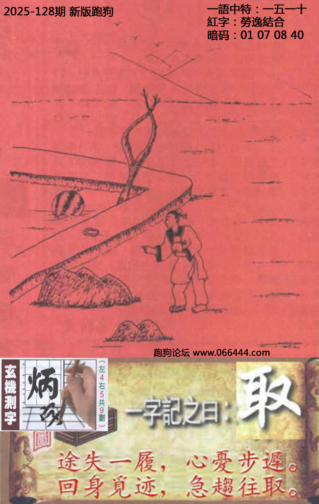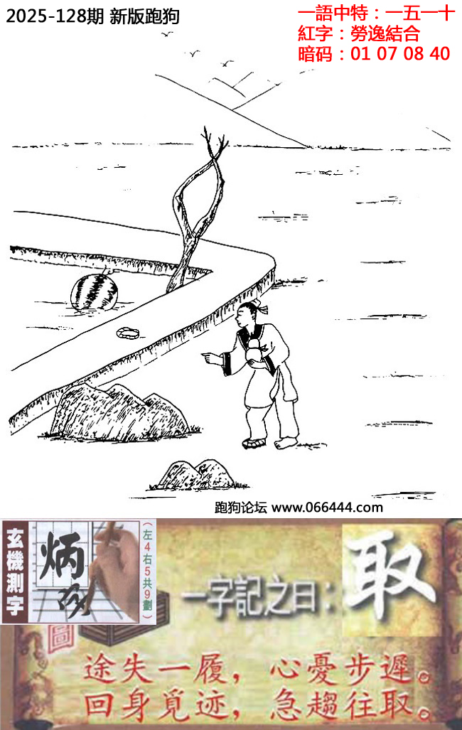 128期六合皇信箱红字【勞逸結合】《暗码:01 07 08 40》开